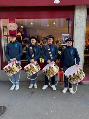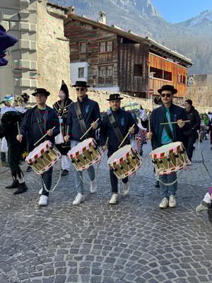 Unsere Rott wird von Tambouren begleitet, welche den eingängigen Schwyzer Narrentanz trommeln, zu dem die Maschgraden auf den Zehenspitzen tanzen. Die Tambouren werden vom Tambourenverein Schwyz zur Verfügung gestellt.